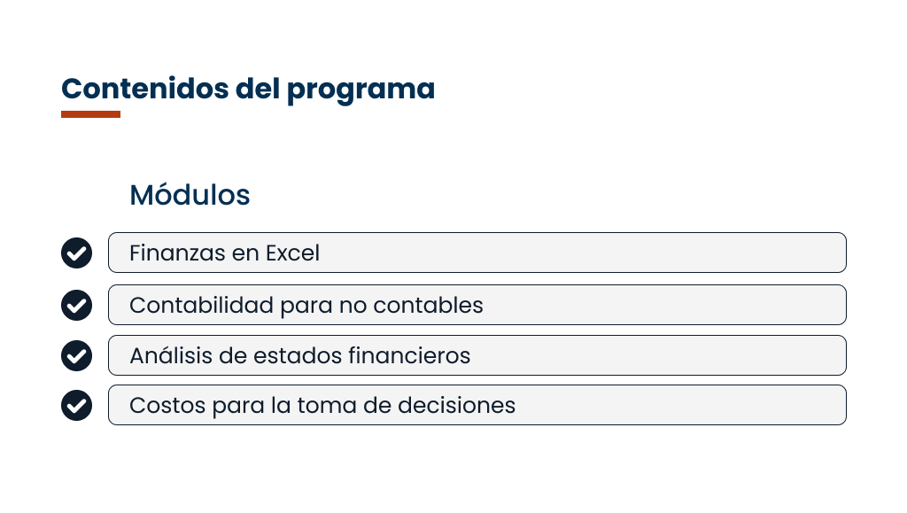 Emprendedores, microempresarios, pequeños empresarios y personas interesadas en gestionar sus finanzas personales o de negocio. No se requiere ser profesional ni tener conocimientos previos en finanzas, ya que el programa está diseñado para facilitar el aprendizaje desde cero.
